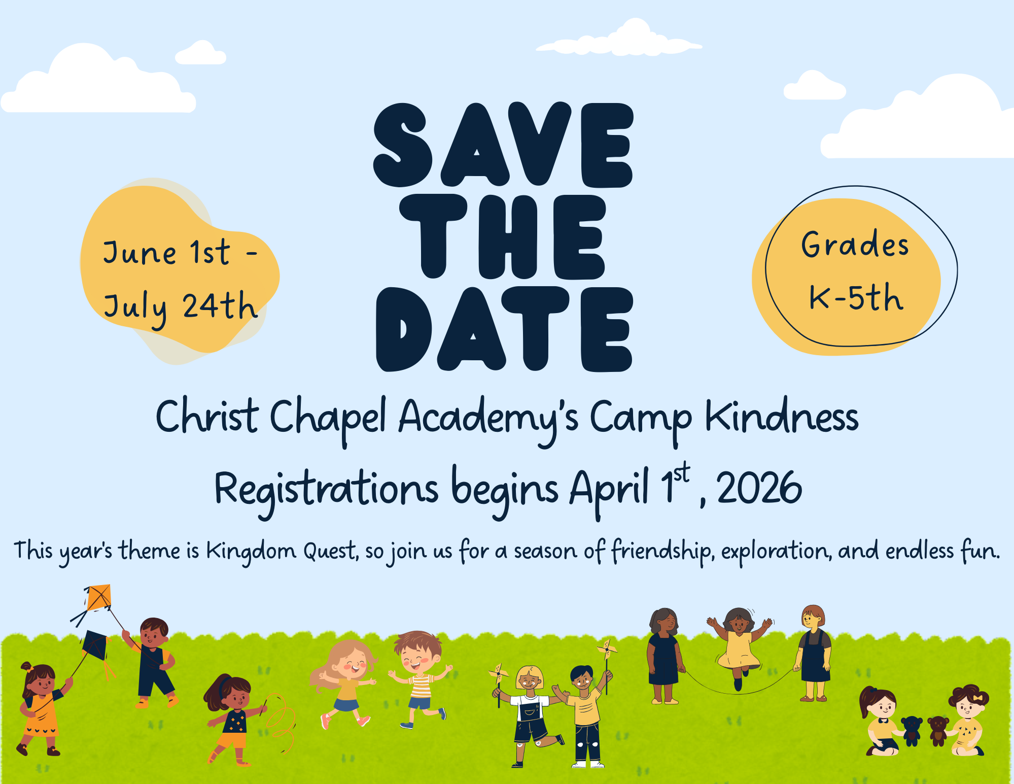 K-5 Welcome Letter-Open to all interested campers grades K-5th. (CCA is no longer accepting 6th Grade students for Summer Camp).